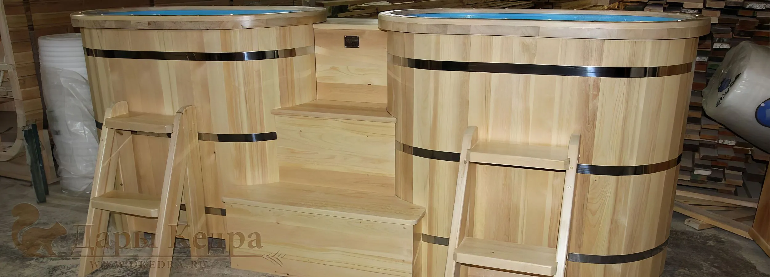 Деревянная ванна из кедра с перепадом высоты